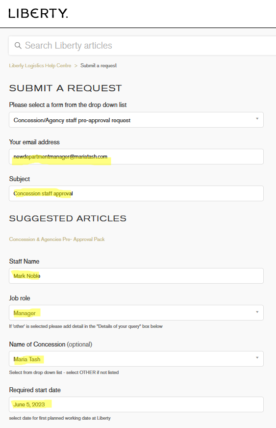 Liberty requires all concession and agency staff to be "store approved" prior to starting work in our store.