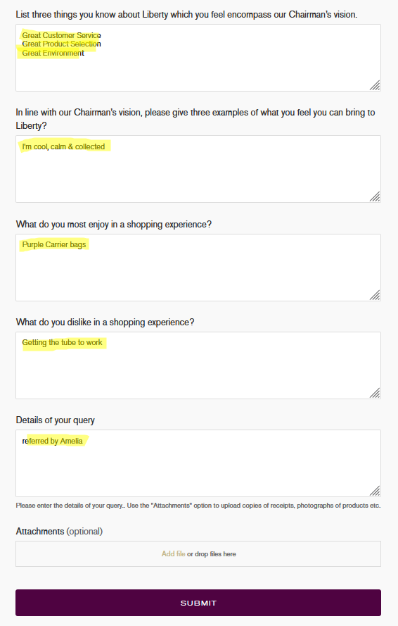 Once completed click on the SUBMIT button.