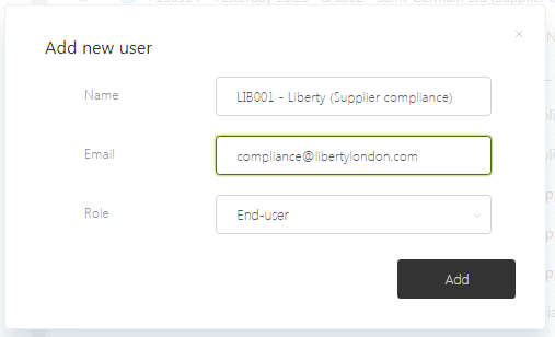 2. Enter the 'Name' and Email address then click 'Add'